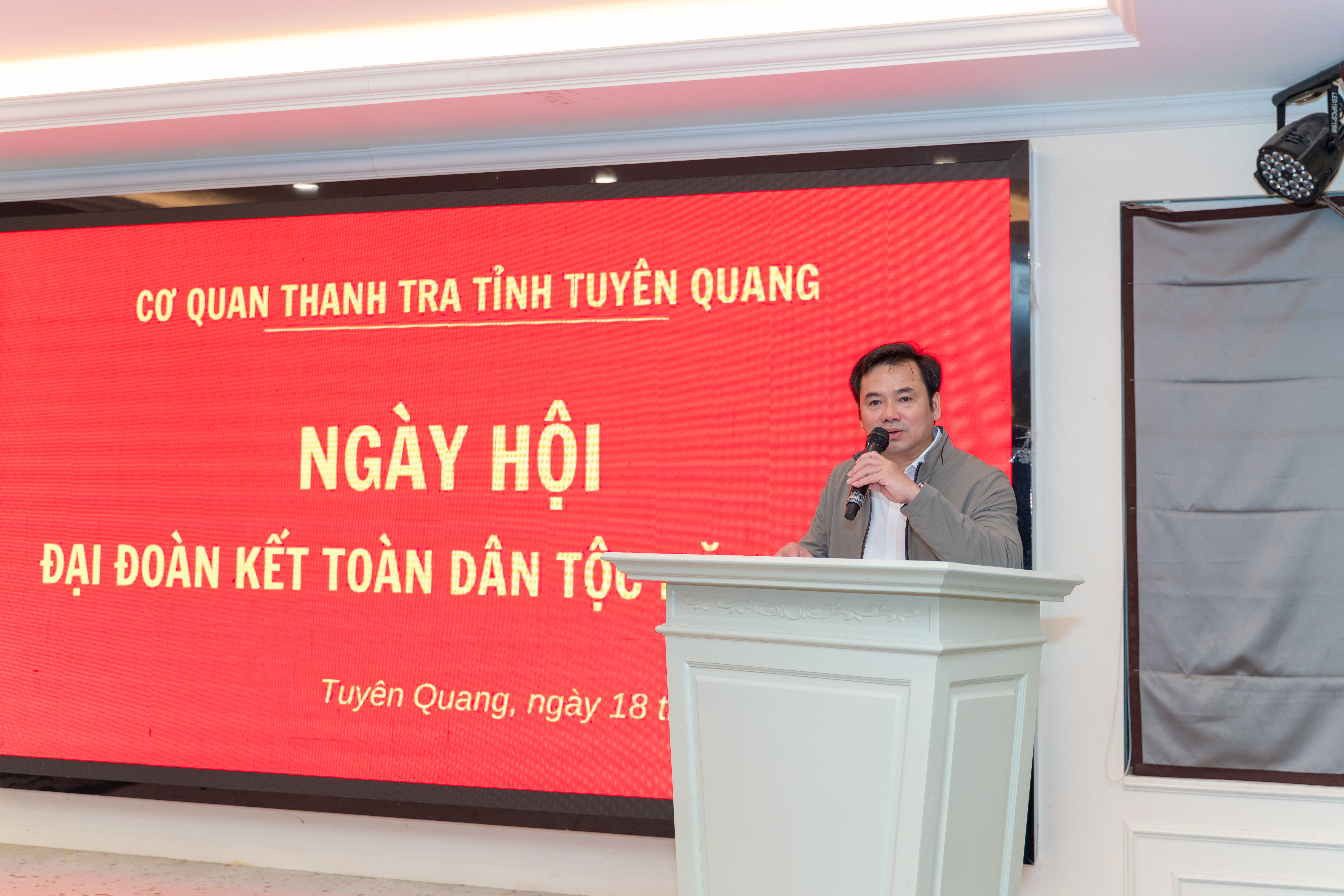 Phát biểu tại Ngày hội, đồng chí Ngô Xuân Nam, Chánh Thanh tra tỉnh nhấn mạnh: Ngày hội Đại đoàn kết toàn dân tộc là dịp để mỗi cán bộ, công chức cơ quan Thanh tra tỉnh thêm tự hào về truyền thống vẻ vang của Mặt trận Tổ quốc Việt Nam, đồng thời củng cố thêm khối đại đoàn kết trong nội bộ cơ quan. Đồng chí đề nghị thời gian tới, toàn thể cán bộ, công chức, người lao động Thanh tra tỉnh tiếp tục phát huy tinh thần đoàn kết, dân chủ, kỷ cương, trách nhiệm; Đẩy mạnh các phong trào thi đua, đổi mới phương pháp công tác; nêu cao tinh thần “dám nghĩ, dám làm, dám chịu trách nhiệm”; tăng cường giám sát, thanh tra, phòng chống tham nhũng hiệu quả; không ngừng học tập, nâng cao trình độ chuyên môn, bản lĩnh chính trị để đáp ứng yêu cầu nhiệm vụ trong giai đoạn mới, góp phần xây dựng tỉnh Tuyên Quang phát triển nhanh, bền vững.