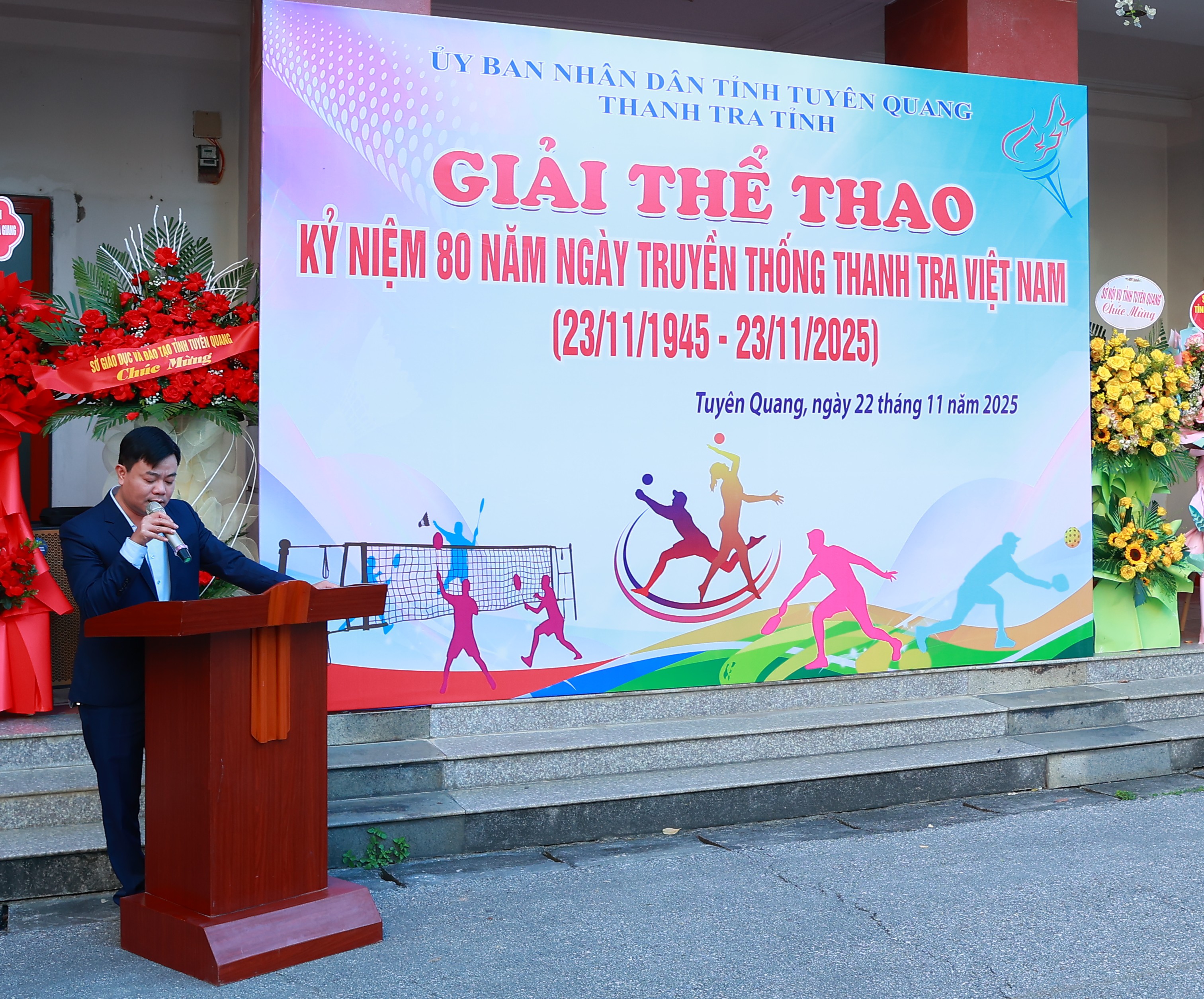 Phát biểu khai mạc, đồng chí Vũ Lương Thạch nhấn mạnh: Giải thể thao là hoạt động ý nghĩa chào mừng 80 năm Ngày Truyền thống ngành Thanh tra Việt Nam, đồng thời hưởng ứng phong trào “Toàn dân rèn luyện thân thể theo gương Bác Hồ vĩ đại”, góp phần nâng cao sức khỏe, tăng cường đoàn kết, tạo sân chơi lành mạnh và giáo dục truyền thống vẻ vang của ngành cho đội ngũ cán bộ, công chức, người lao động.