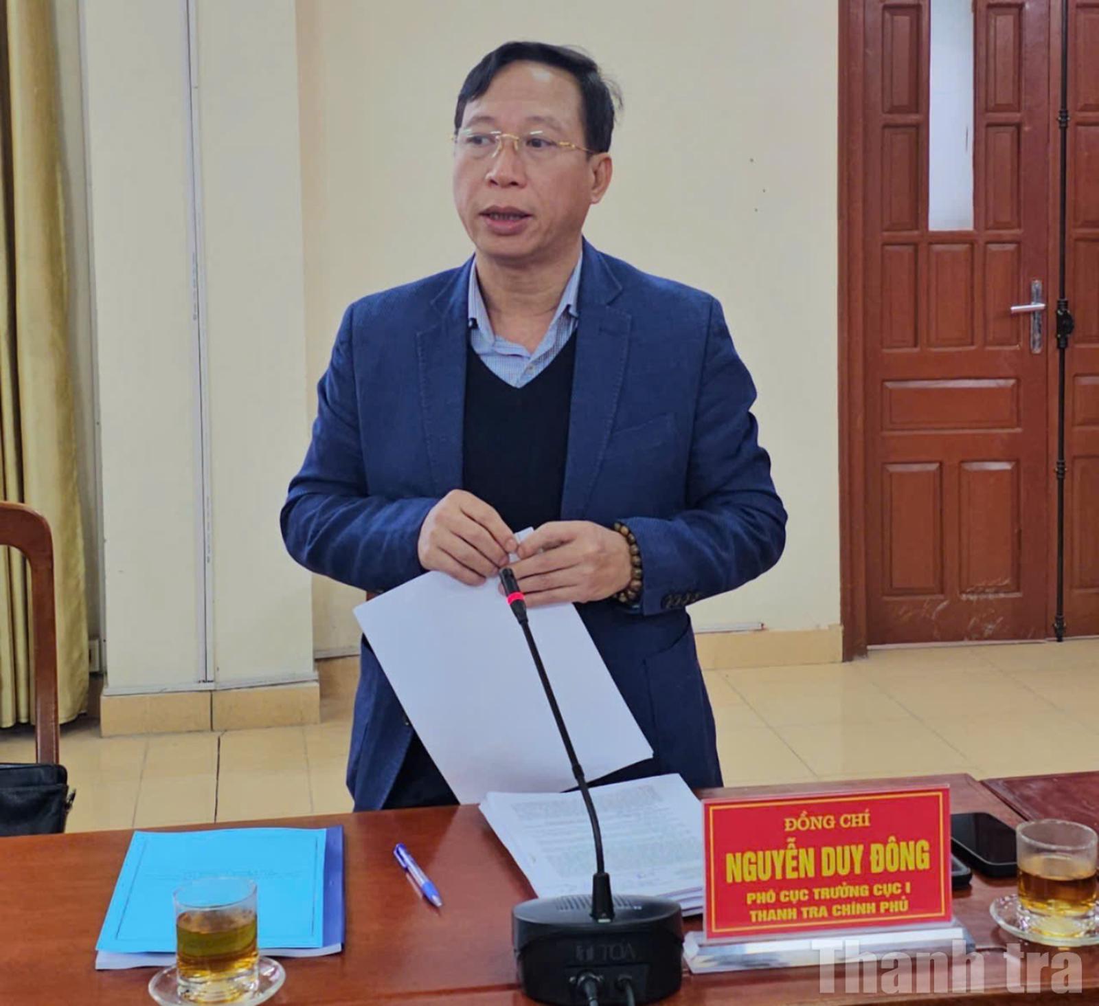 Ông Nguyễn Duy Đông, Phó Cục trưởng Cục I, Thanh tra Chính phủ phát biểu tại buổi làm việc. Ảnh: Bùi Bình
